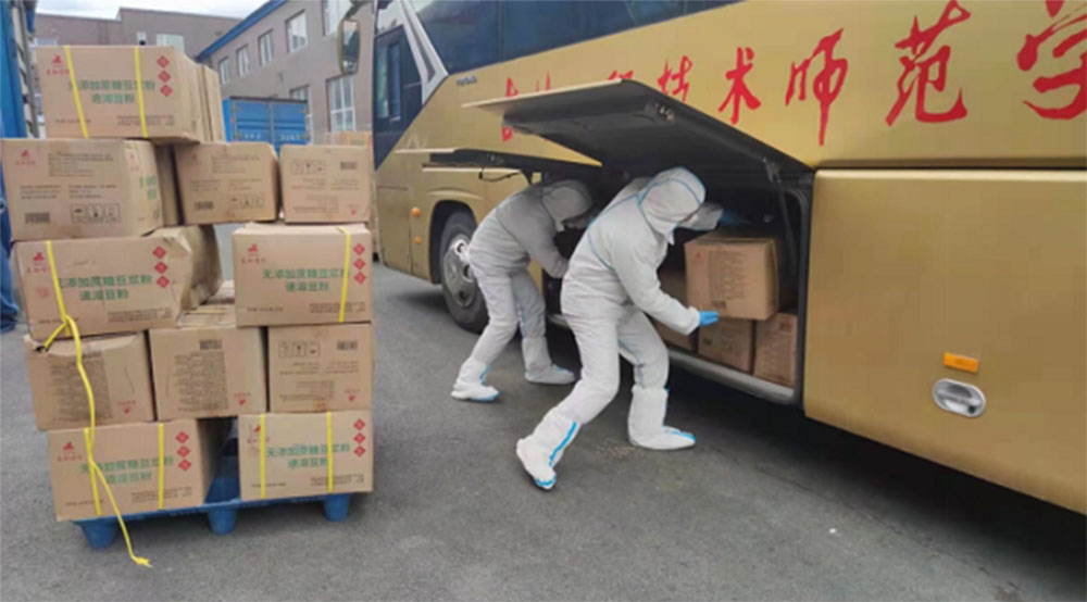 2月以來,吉林疫情的爆發(fā)受到全國上下高度關(guān)注。為幫助吉林打贏疫情防控阻擊戰(zhàn),2022年4月5日永和食品公司組織人員將120箱公益物資裝車并在吉林省慈善總會的協(xié)調(diào)下順利運達吉林工程技術(shù)師范學(xué)院。吉林工程技術(shù)師范學(xué)院黨委常委、組織部部長于彥民,財務(wù)處處長鞠文博,信息中心主任劉爽,后勤基建處處長白日東,吉林經(jīng)銷商長春嘉康經(jīng)貿(mào)于英杰總經(jīng)理代表永和食品公司共同參與了此次公益捐贈活動。