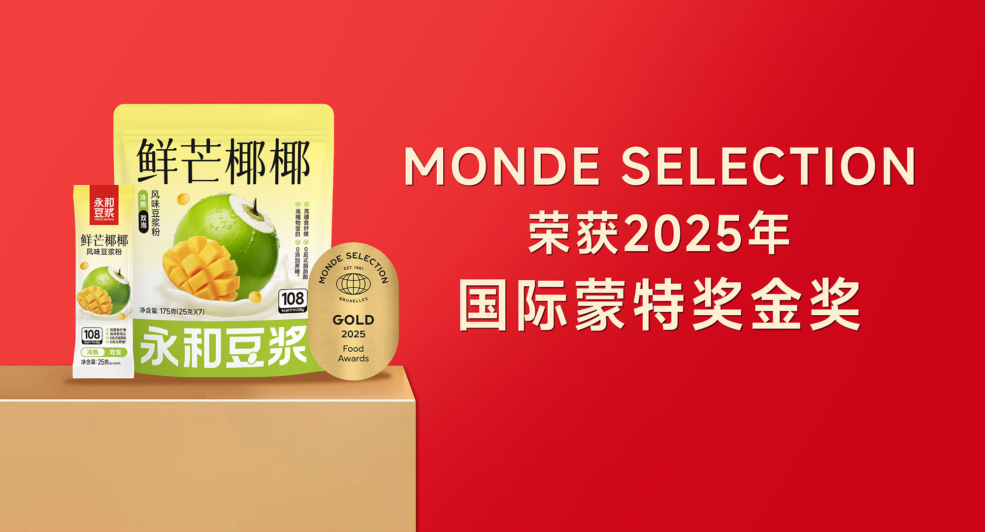 永和豆?jié){風味系列新品鮮芒椰椰豆?jié){粉榮獲蒙特獎金獎!