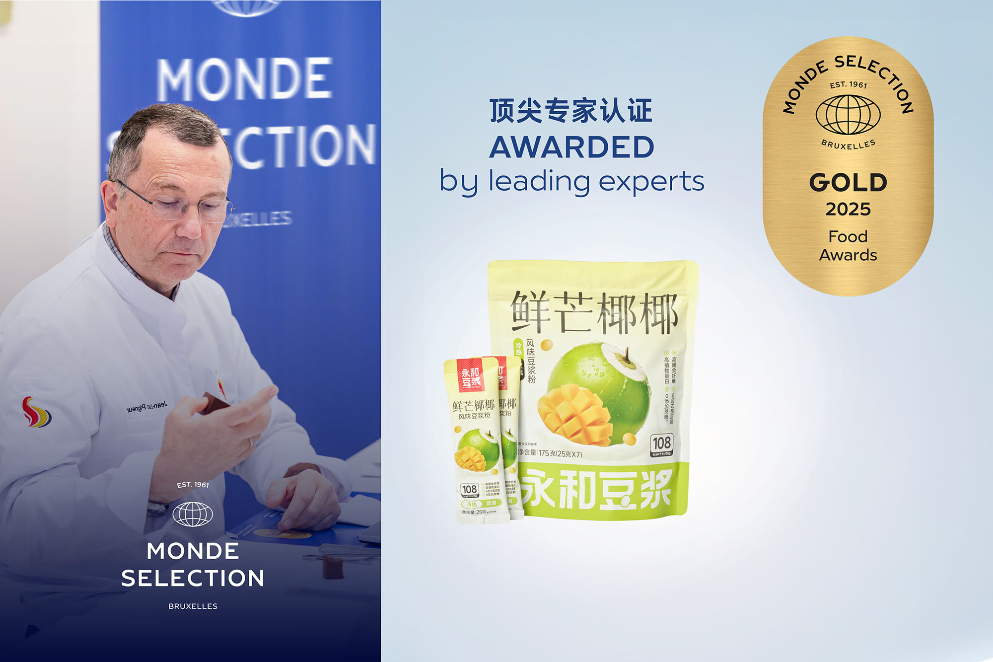 永和豆?jié){新品「鮮芒椰椰豆?jié){粉」經過蒙特獎國際專家評審團的全面、獨立評鑒,在獨特品質、產地、用途及多項關鍵指標上均表現卓越,榮獲此獎項無疑是對其品質的最好證明。