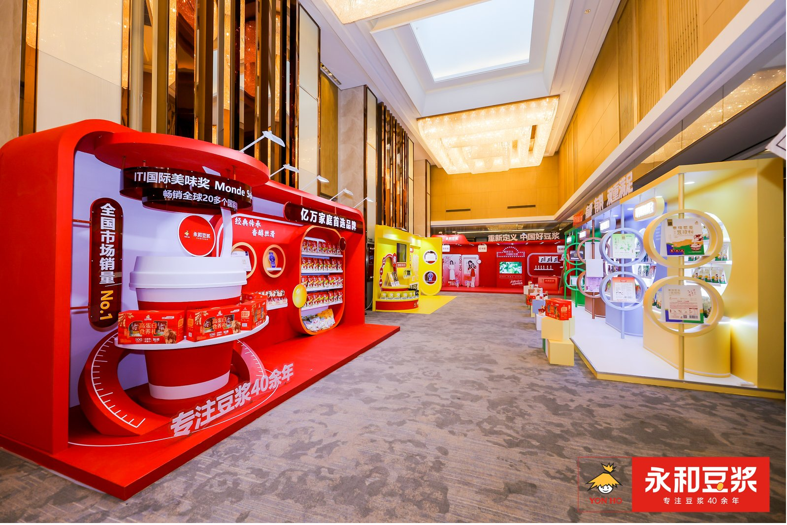 大會外場還搭建了炫彩奪目的品牌長廊和沉浸式品牌體驗(yàn)空間,匠心打造八大主題展示區(qū)—“戰(zhàn)略定位-品牌區(qū)”、“藥食同源·中華老藥工問診區(qū)”“有顏有料·新品區(qū)”、“健康生活·純豆區(qū)”、“國民選擇·經(jīng)典區(qū)“、“明星代言·打卡區(qū)”、“幸運(yùn)轉(zhuǎn)盤·互動區(qū)、“炒餡包子x花式豆?jié){·餐飲區(qū)”。這八大展區(qū)以多維度、沉浸式的呈現(xiàn)方式,讓合作伙伴直觀感受永和深耕大豆產(chǎn)業(yè)的歷史傳承、創(chuàng)新突破與未來愿景,生動詮釋了品牌“昨天·今天·明天”的完整發(fā)展脈絡(luò)。