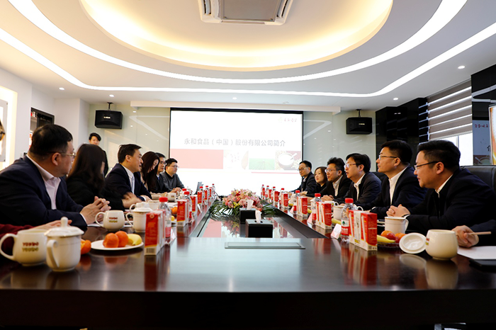 2021年3月11日,海安市委副書記、市長(zhǎng)譚真帶領(lǐng)副市長(zhǎng)張?jiān)?、海安市高新區(qū)等一行蒞臨永和豆?jié){總部參觀指導(dǎo),永和食品(中國(guó))股份有限公司林建雄董事長(zhǎng)對(duì)譚真副書記代表團(tuán)的到來表示了熱烈歡迎!