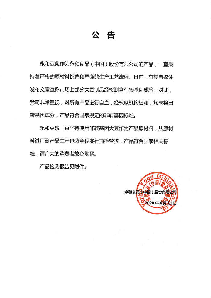 ▲冰鮮豆?jié){粉檢測報(bào)告
