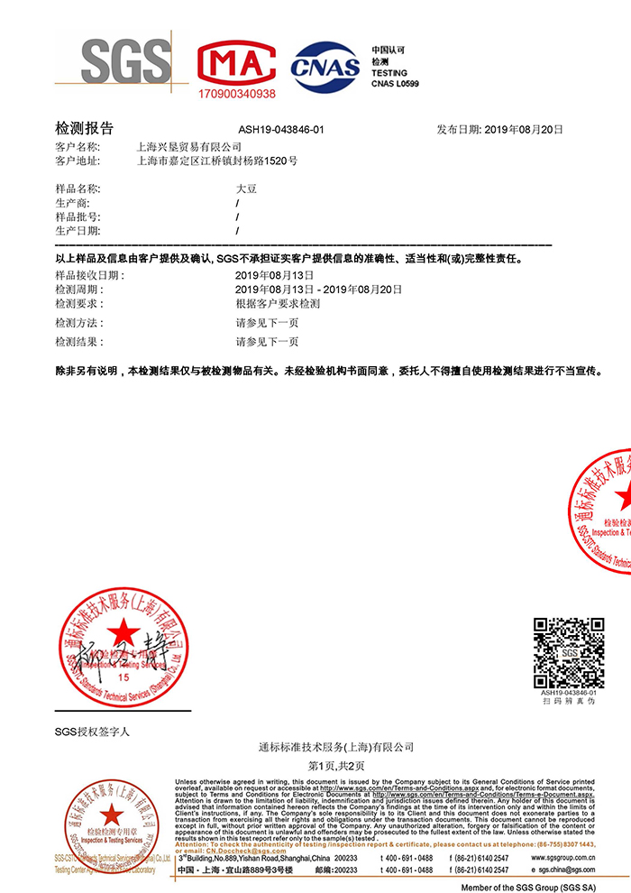 ▲無添加蔗糖豆?jié){粉檢測報(bào)告