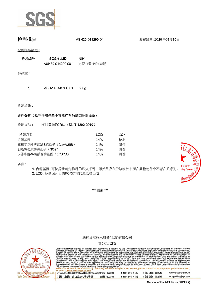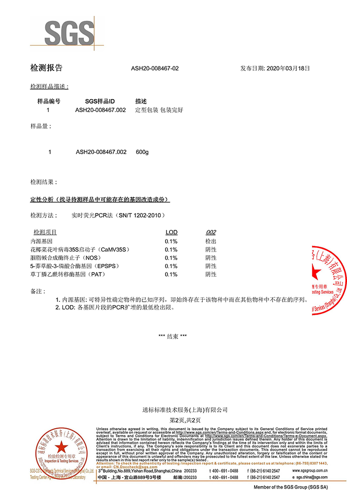 ▲大豆非轉(zhuǎn)基因檢測報(bào)告
